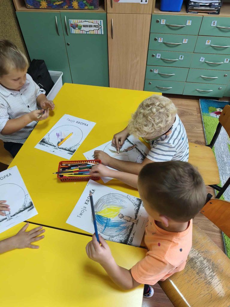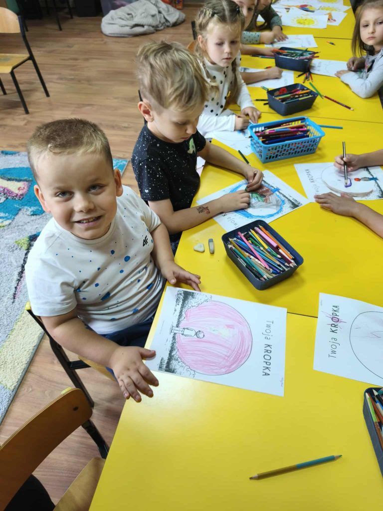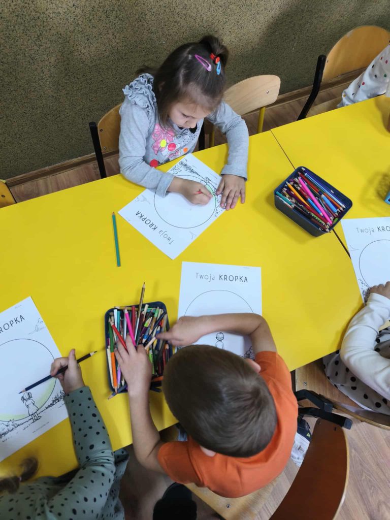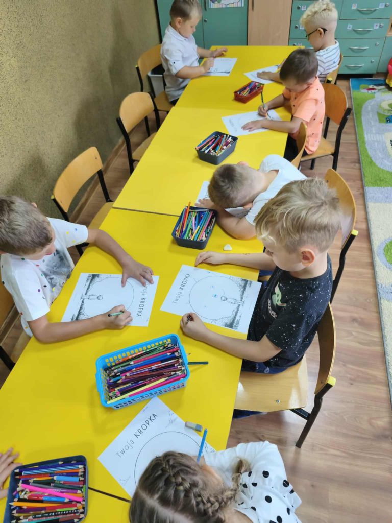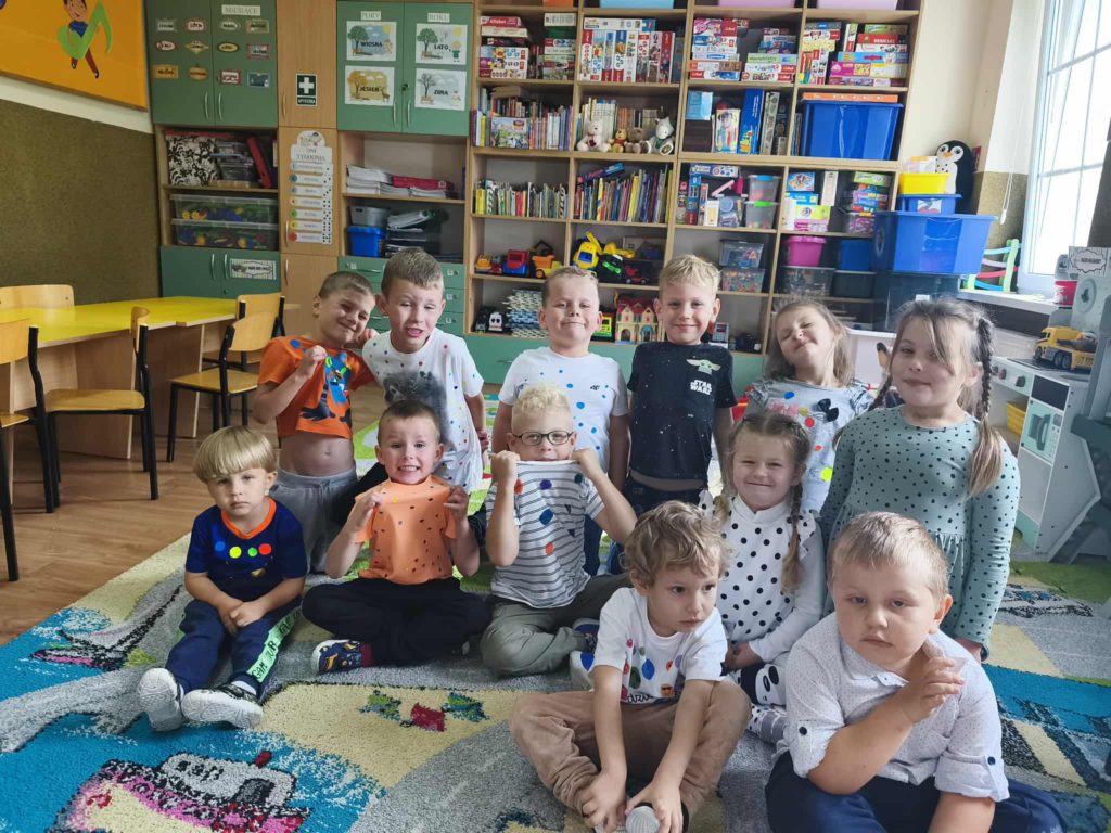 Dzieci w tym dniu przyszły ubrane w rzeczy ozdobione kolorowymi kropkami i z radością uczestniczyły w kreatywnych zajęciach. Przedszkolaki uważnie wysłuchały opowiadania „Kropka” Petera H. Reynoldsa. Rozmawialiśmy o tym, że każdy z nas posiada wyjątkowy talent, a nawet maleńka kropka może stać się początkiem wielkich rzeczy. Wykonaliśmy piękne prace plastyczne z wykorzystaniem kropek ulepionych z plasteliny. Następnie pobudziliśmy naszą wyobraźnię i narysowaliśmy świat w kropce. Na zakończenie czekały na nas zajęcia z kodowania. Był to dzień pełen radości i uśmiechu. Dzięki temu wielu z nas poznało swoje talenty i nabrało większej pewności siebie.