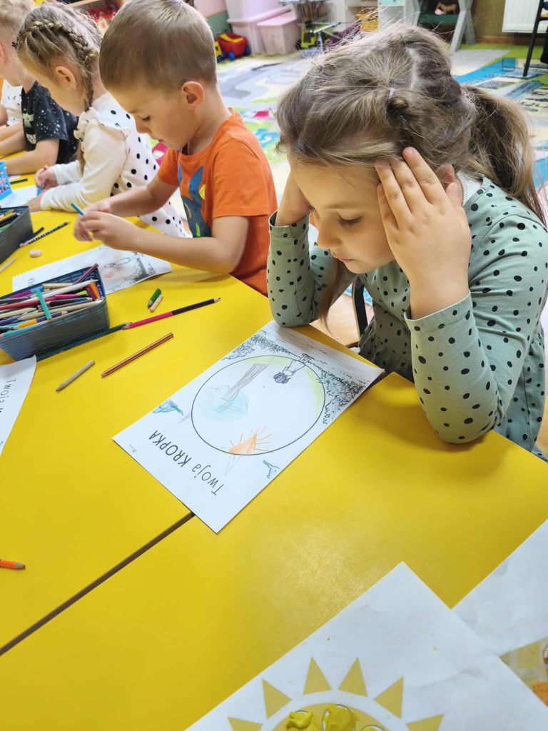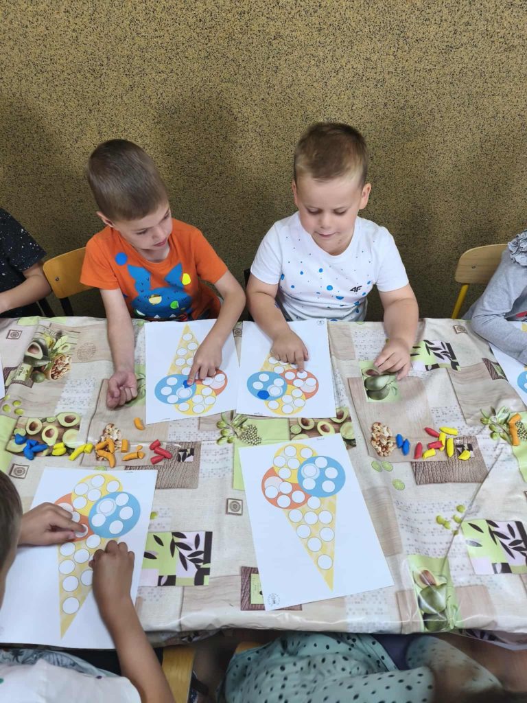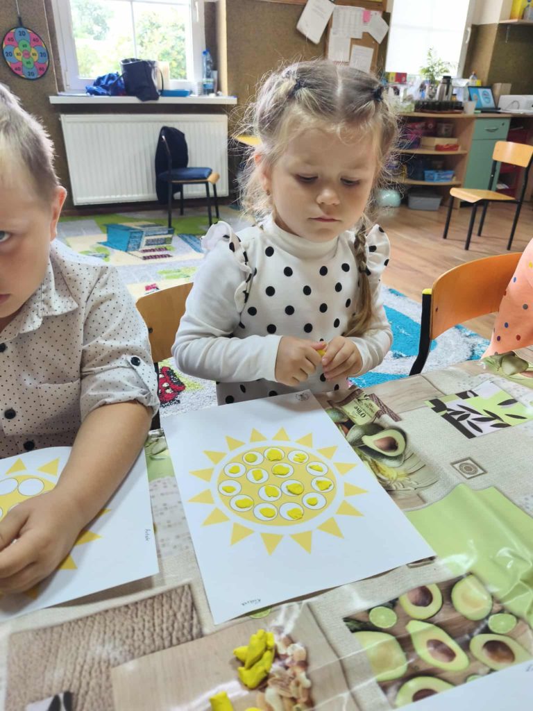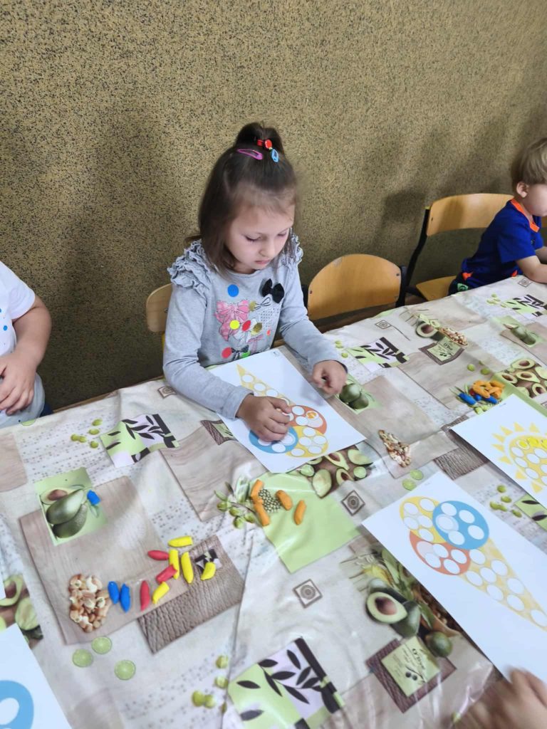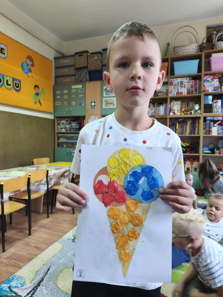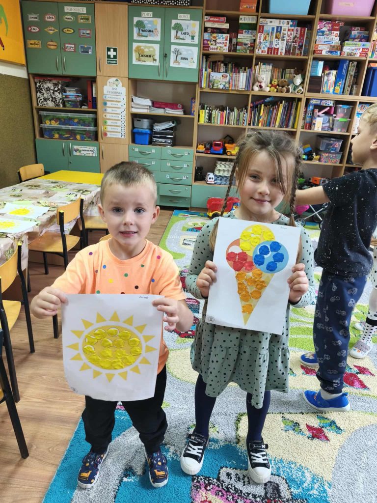 Dzieci w tym dniu przyszły ubrane w rzeczy ozdobione kolorowymi kropkami i z radością uczestniczyły w kreatywnych zajęciach. Przedszkolaki uważnie wysłuchały opowiadania „Kropka” Petera H. Reynoldsa. Rozmawialiśmy o tym, że każdy z nas posiada wyjątkowy talent, a nawet maleńka kropka może stać się początkiem wielkich rzeczy. Wykonaliśmy piękne prace plastyczne z wykorzystaniem kropek ulepionych z plasteliny. Następnie pobudziliśmy naszą wyobraźnię i narysowaliśmy świat w kropce. Na zakończenie czekały na nas zajęcia z kodowania. Był to dzień pełen radości i uśmiechu. Dzięki temu wielu z nas poznało swoje talenty i nabrało większej pewności siebie.