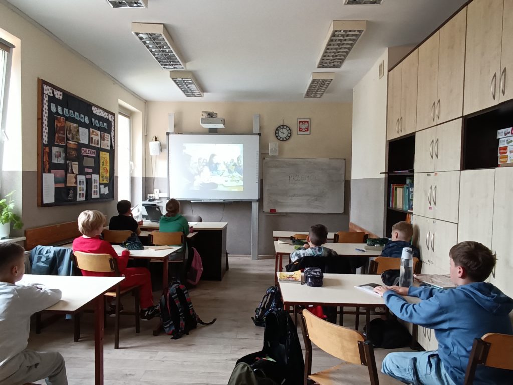 W klasie czwartej odbyły się zajęcia z pedagogiem specjalnym w ramach Tygodnia Przeciwdziałania Przemocy Rówieśniczej. Spotkanie było okazją do rozmowy o tym, czym jest życzliwość i dlaczego ma tak duże znaczenie w budowaniu dobrych relacji między rówieśnikami. Uczniowie zastanawiali się, jak ich słowa i zachowania wpływają na innych oraz w jaki sposób można reagować, gdy ktoś doświadcza przykrości. Ważnym elementem zajęć były ćwiczenia rozwijające empatię i umiejętność dostrzegania emocji u drugiej osoby. Dzieci miały możliwość dzielenia się przykładami sytuacji, w których doświadczyły wsparcia, a także zastanawiały się, co same mogą zrobić, aby ich klasa była miejscem pełnym szacunku i wzajemnej pomocy. Podsumowując, uczniowie odkryli, że każdy z nich ma wpływ na atmosferę w grupie.