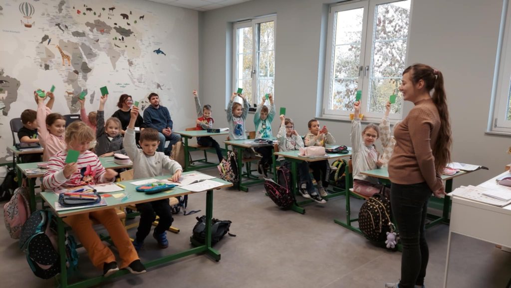 W trakcie lekcji uczniowie pracowali z opowiadaniem „Może jutro”, dyskutowali o obowiązkach domowych bohaterów oraz własnych, a także odczytywali informacje z tabeli i przygotowywali ilustracje swoich codziennych zadań. Dużo radości sprawiła im praca w parach, podczas której wspólnie tworzyli mini-karty z obowiązkami domowymi i prezentowali swoje pomysły przed klasą. Zajęcia zakończyły się podsumowaniem metodą „Światełek”, wykorzystywanych w ocenianiu kształtującym dzięki której uczniowie mogli dokonać samooceny poziomu zrozumienia tematu.