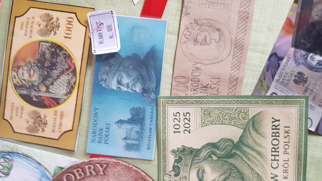 W związku z 1000 rocznicą koronacji Bolesława Chrobrego na króla Polski uczniowie naszej szkoły mieli okazję wziąć udział w konkursie na projekt monety lub banknotu z wizerunkiem Bolesława Chrobrego. 7 listopada 2025r. odbyło się uroczyste ogłoszenie wyników tego konkursu. Spośród wszystkich prac Komisja Konkursowa wybrała najlepsze, przyznając dyplomy, nagrody główne oraz wyróżnienia
