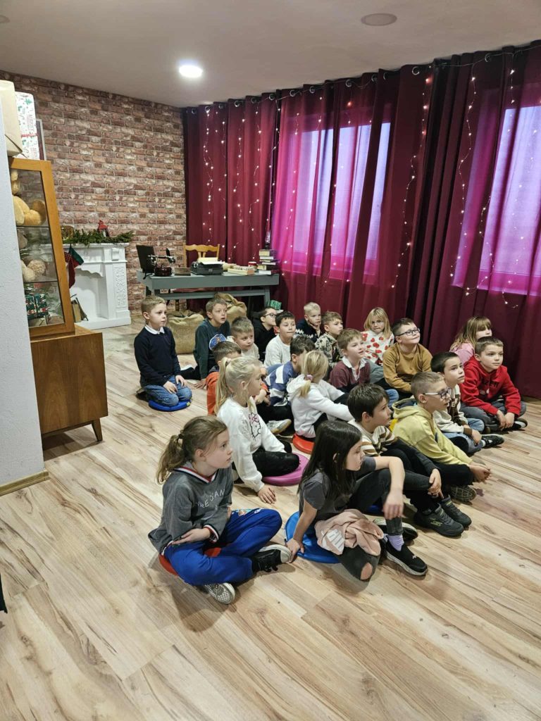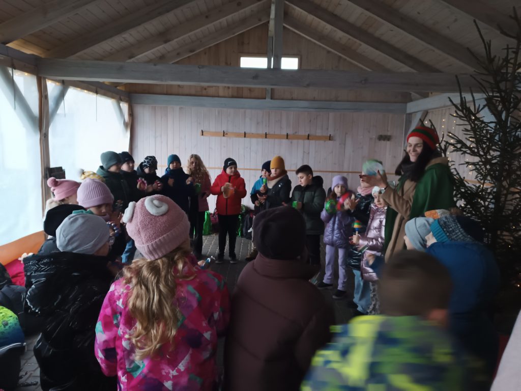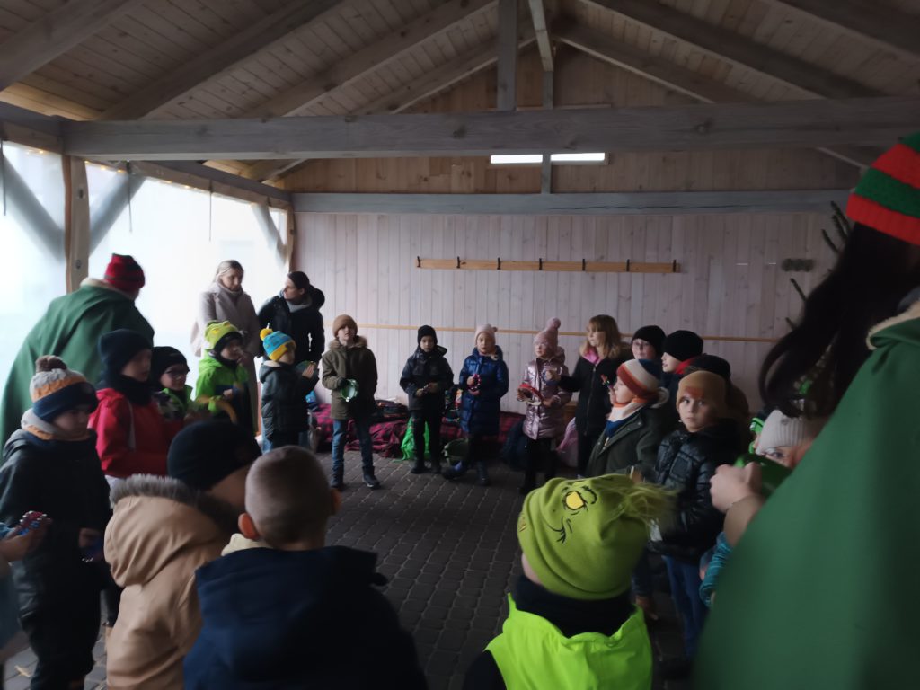 Na zakończenie wycieczki odbyło się długo wyczekiwane spotkanie ze Świętym Mikołajem. Zanim rozdano prezenty, uczniowie wspólnie zaśpiewali Mikołajowi piosenkę „Kolędowy czas”, co wywołało uśmiech na jego twarzy. Po występie każde dziecko otrzymało świąteczny upominek.