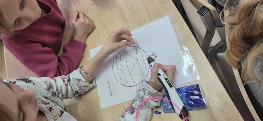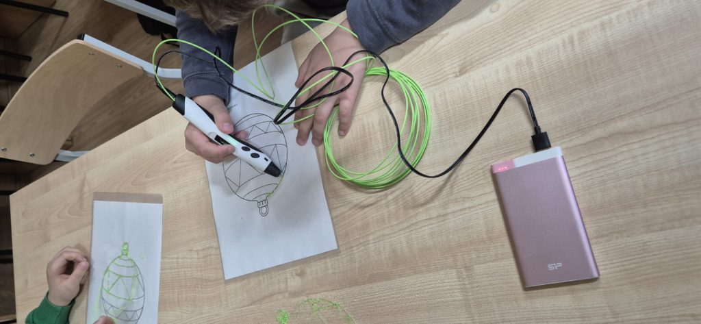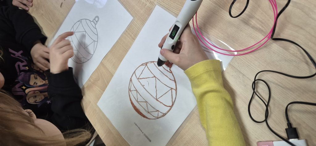 W naszej szkole ruszyła prawdziwa fabryka świątecznych ozdób! ✨ Uczniowie, wyposażeni w pisaki 3D, tworzą oryginalne bombki, gwiazdki i kolorowe zawieszki 🎁. Dzięki nowoczesnym narzędziom rozwijają kreatywność i zdolności manualne, a przy tym świetnie się bawią 🙌.