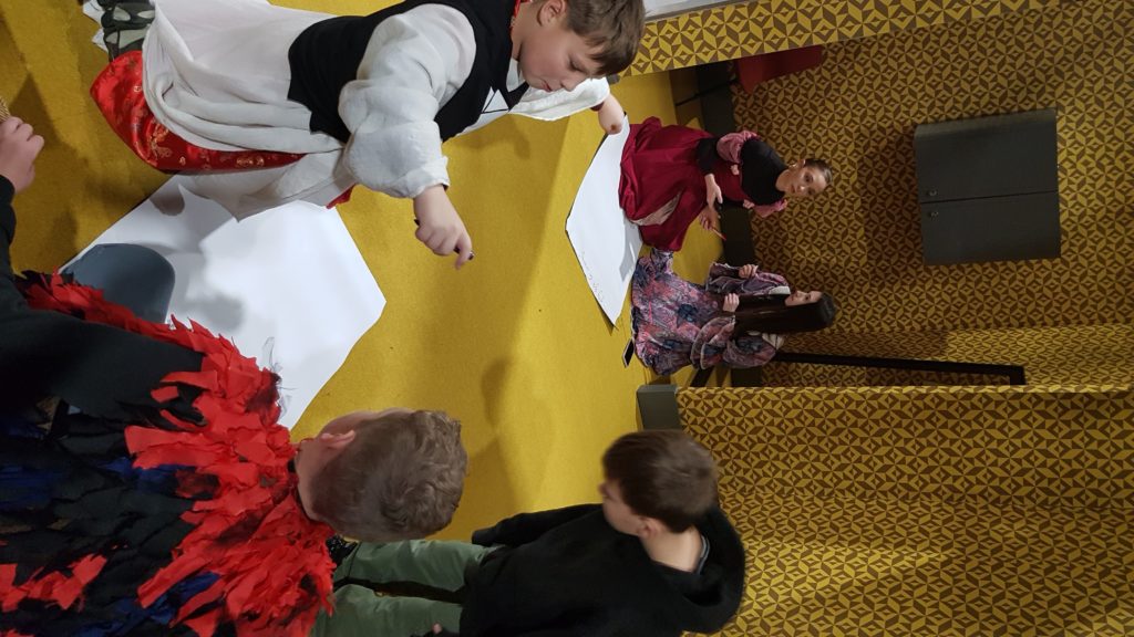 Najciekawszą i najbardziej inspirującą częścią zajęć było przebieranie się w kostiumy teatralne, wcielanie się w aktorów i odgrywanie scenek. Były to dla nas niezwykle kreatywne zajęcia, a w wielu z nas obudził się talent aktorski !