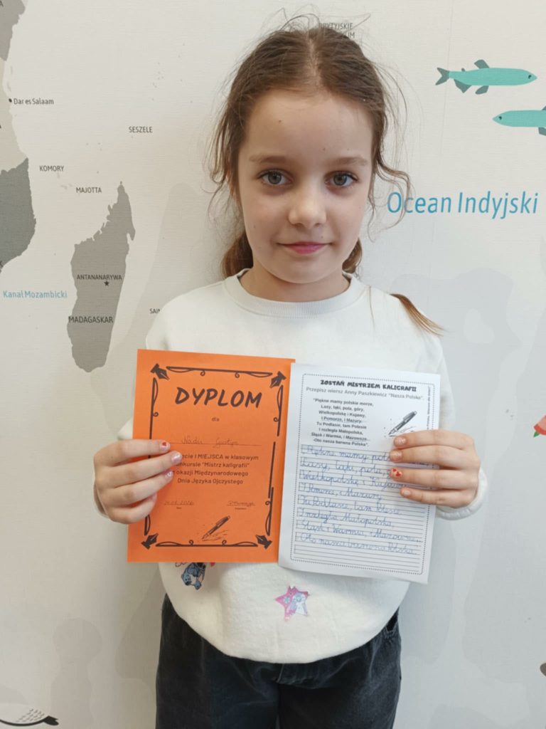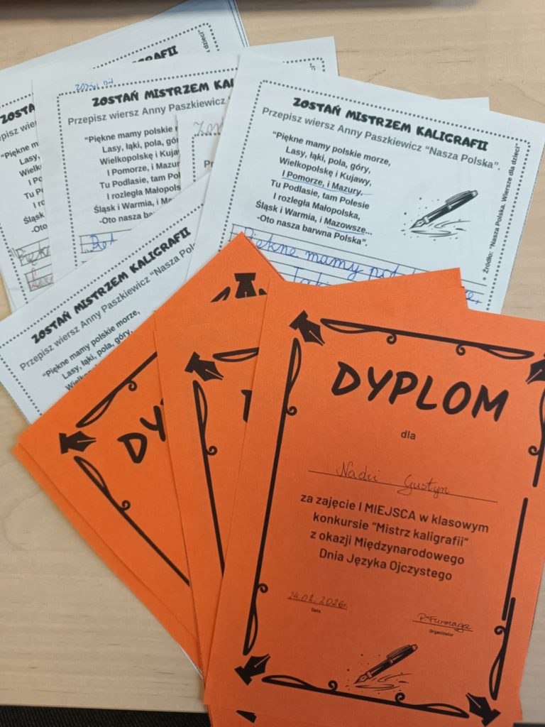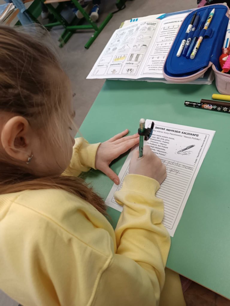Jak co roku uczniowie naszej szkoły aktywnie uczestniczyli w zajęciach przygotowanych specjalnie z tej okazji. W oddziale przedszkolnym oraz w klasach I – III odbyła się „Godzina kaligrafii”. Ćwiczenia kaligraficzne to nie tylko nauka ładnego, starannego pisania. Przynoszą one wymierne korzyści dla ciała i umysłu, działając wyciszająco, poprawiając koncentrację uwagi i uważność. Służą też rozwojowi cierpliwości i dyscypliny, pobudzają pracę mózgu oraz rozwijają zdolności manualne. Na uznanie zasługują nasi wszyscy przedszkolacy, którzy z należytą starannością wykonali wszystkie ćwiczenia kaligraficzne. W klasach I -III wyniki wewnątrzklasowych konkursów kaligraficznych przedstawiają się następująco: