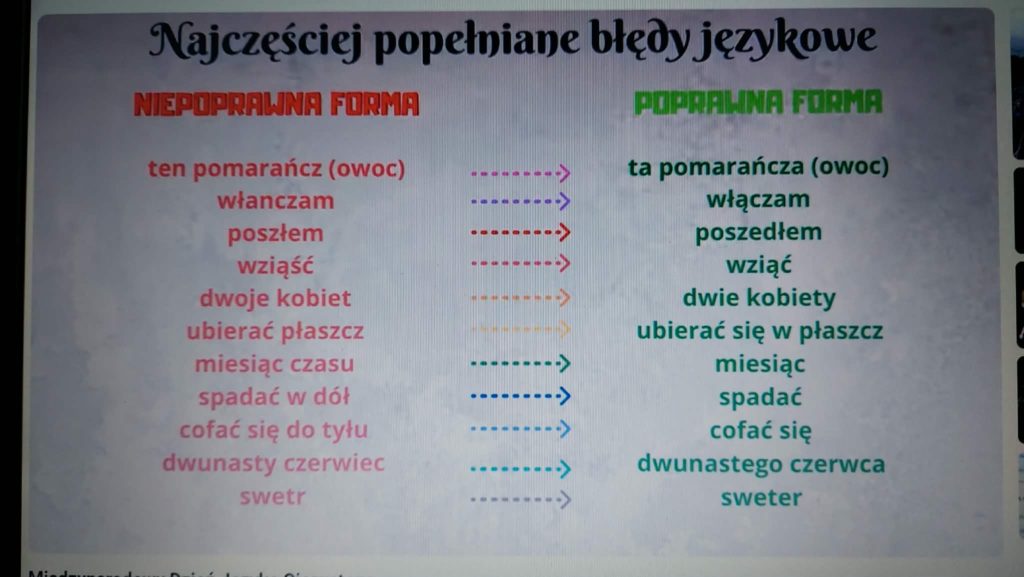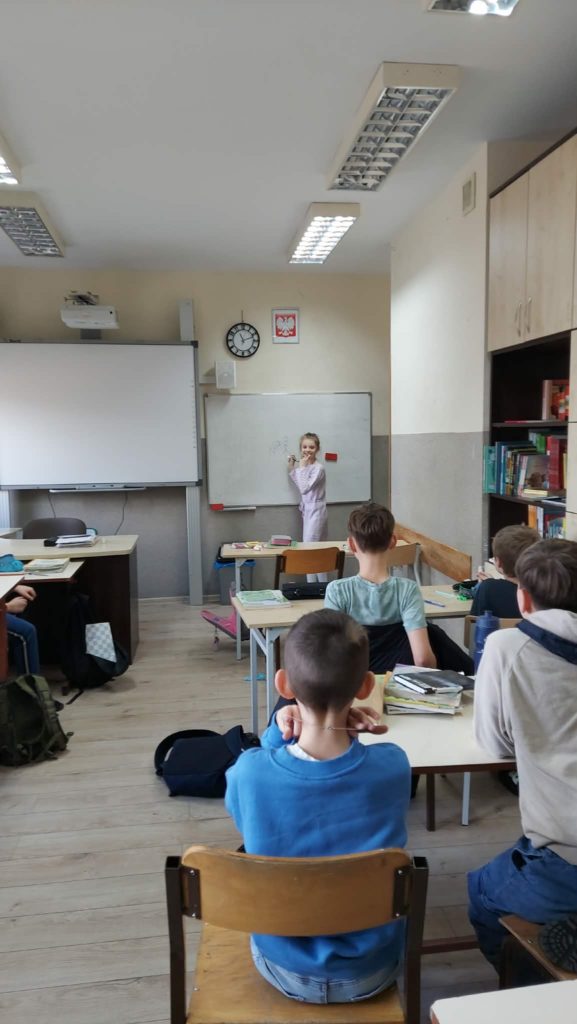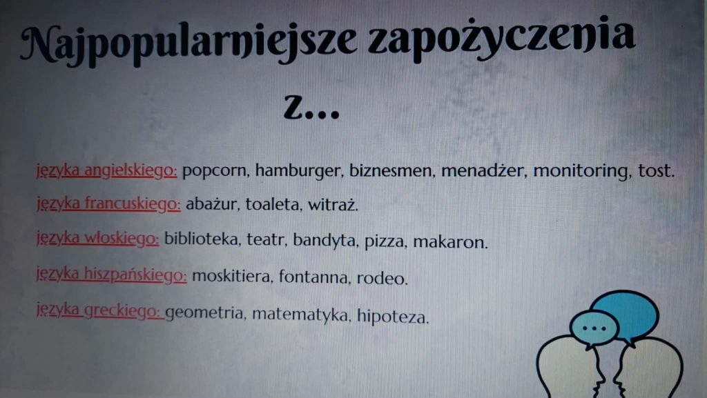 Uczniowie klas IV – VI poznali m.in. historię święta, statystyki dotyczące najbardziej popularnych języków świata, najważniejsze fakty związane z kształtowaniem się naszego języka narodowego w oparciu o filmiki edukacyjne z serii „Błyskawiczne dzieje polszczyzny”, pierwsze zapisane wyrazy, zdania i teksty literackie w języku polskim, najpopularniejsze zapożyczenia z różnych języków występujące w naszym języku ojczystym na przestrzeni wieków, a także utrudnienia z jakimi zmagają się obcokrajowcy, ucząc się języka polskiego. Na konkretnych przykładach rozważaliśmy najczęściej popełniane błędy językowe. Klasa V przygotowała gazetkę okolicznościową. W tym dniu nie zabrakło także zmagań konkursowych związanych z prezentacją kalamburów dotyczących popularnych związków frazeologicznych, plakatów promujących język polski czy też „językowych połamańców”.